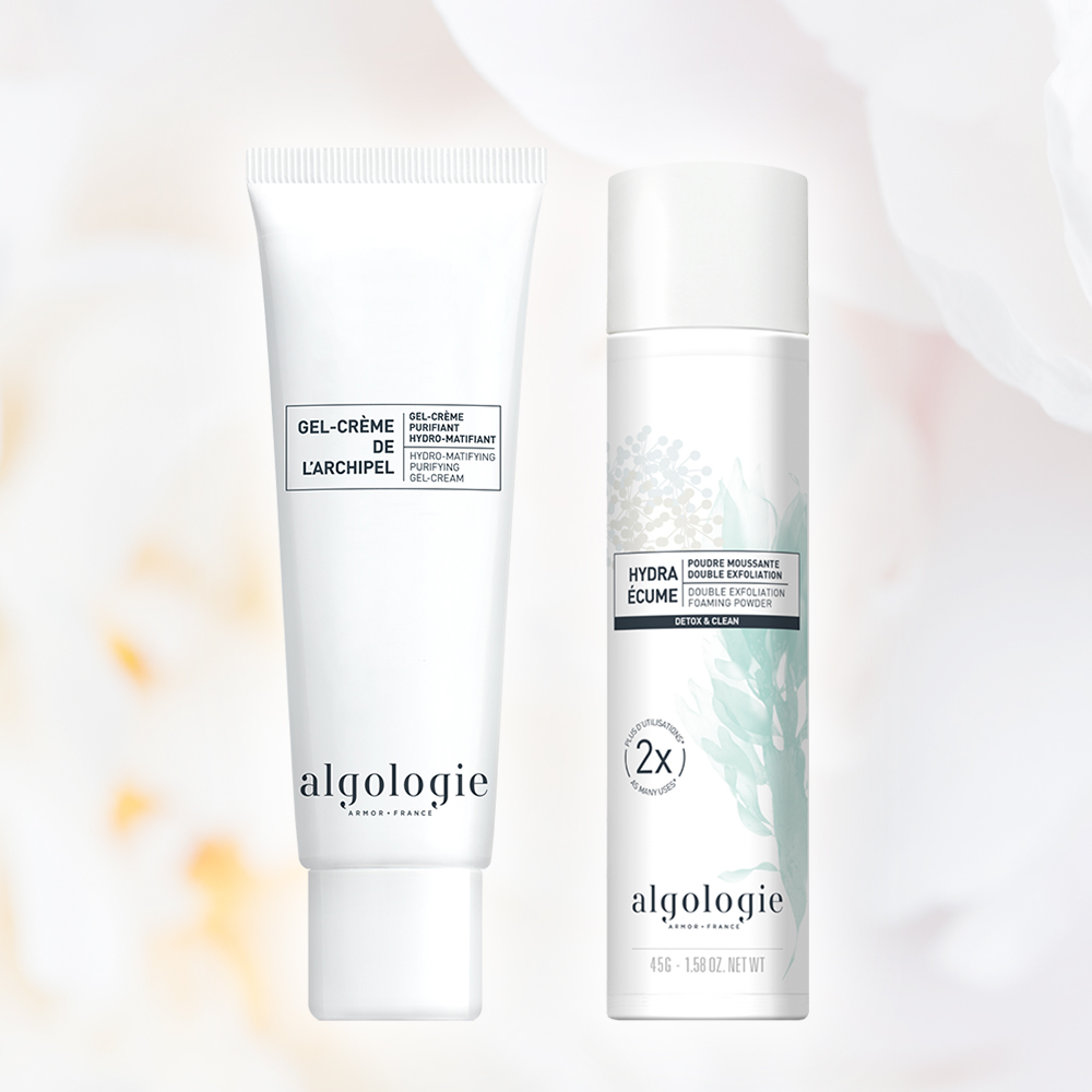 Includes: Hydro-matifying Gel-cream Archipel 50 mL and Double exfoliating foaming powder Hydra Écume 45 g.